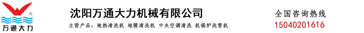 沈陽萬通大力機械有限公司是智能數碼地熱清洗機、新型快速動汽清洗機、管道疏通機,高壓清洗機、管道清洗機,鍋爐洗管機 中央空調清洗機,高壓水射流清洗機。冷凝器清洗機、空氣預熱器清洗機、大型市政管道疏通車和試壓泵的設計、制造和銷售的專業型企 業。